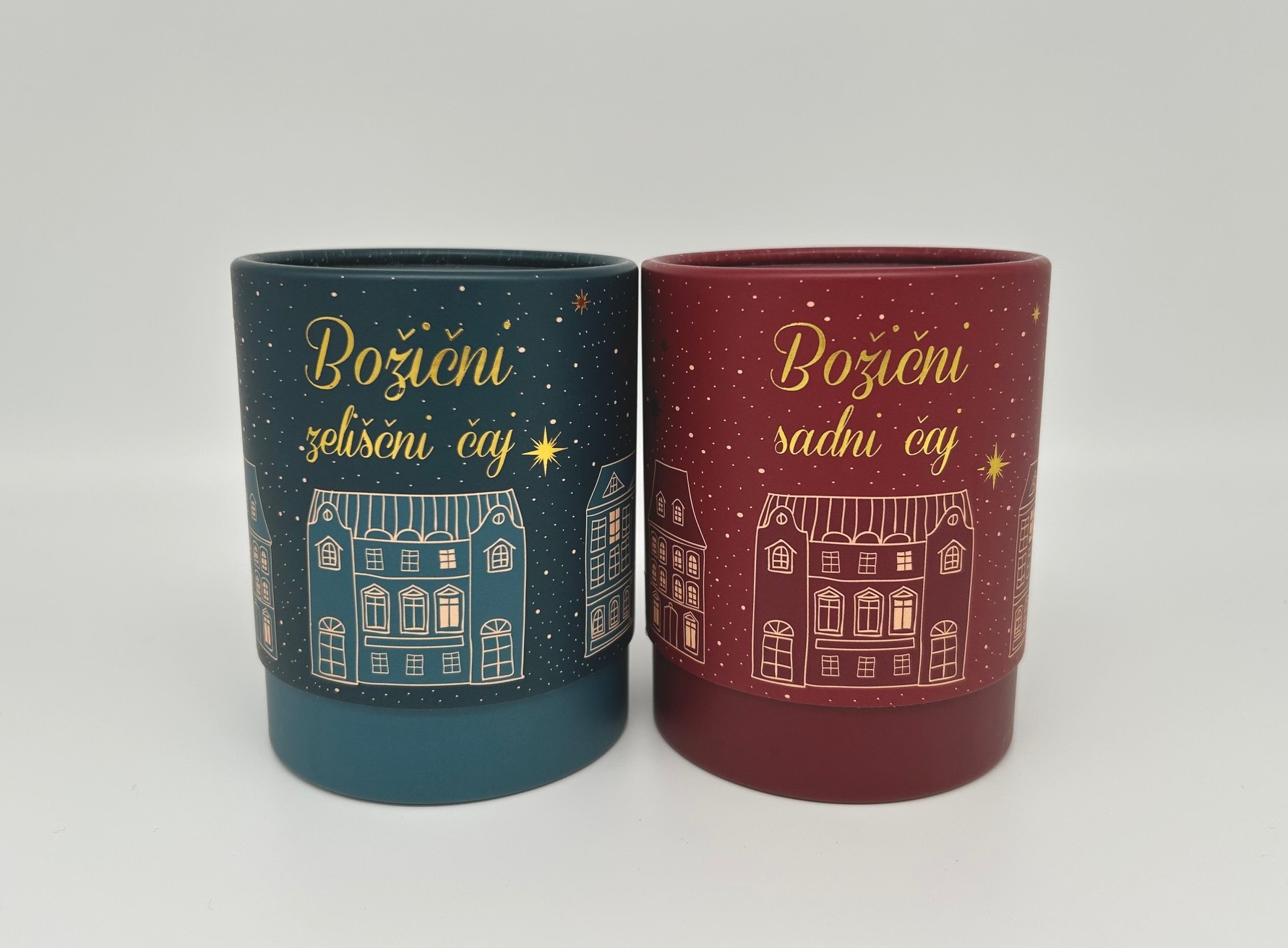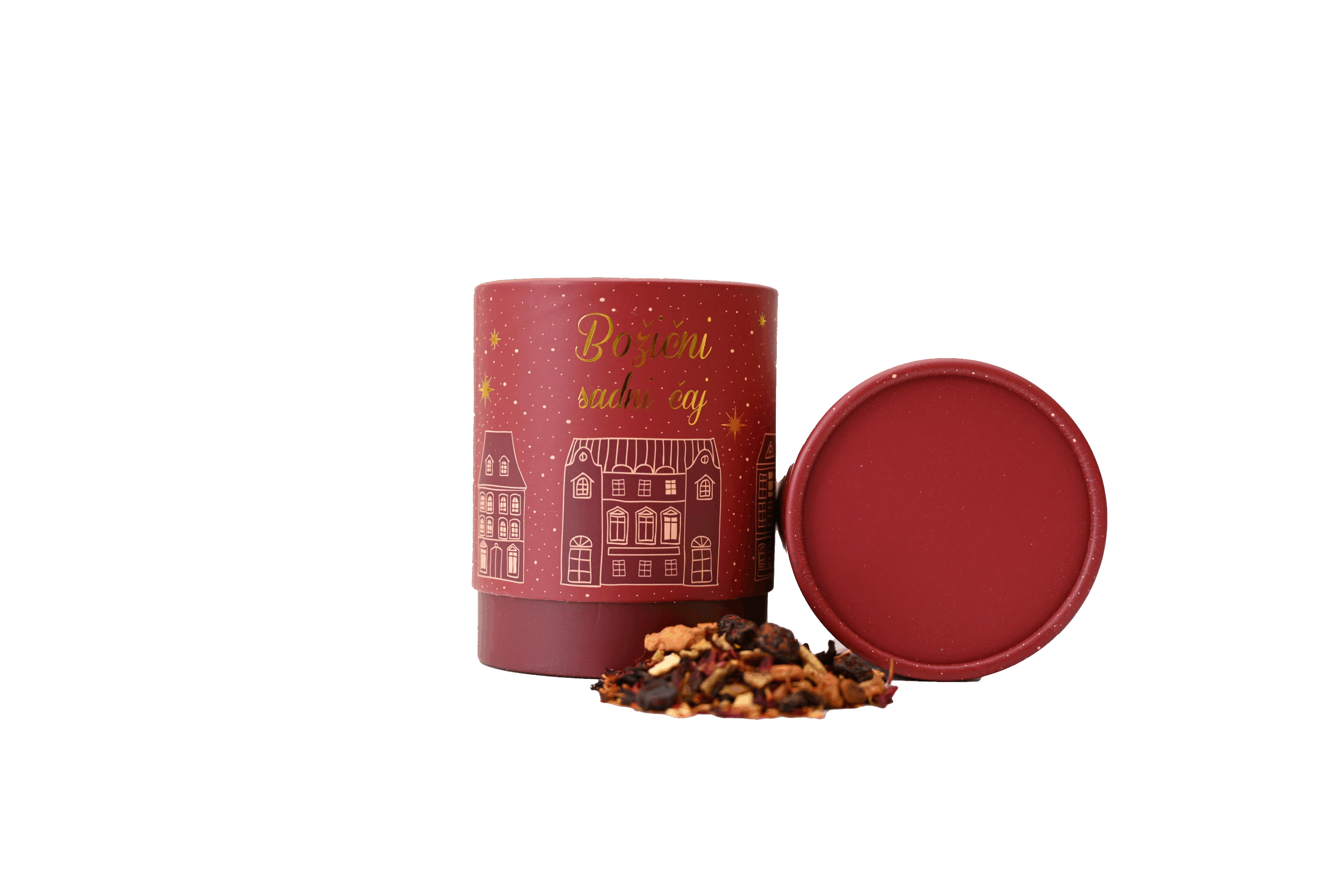 Opis: božični čaj, ki prinaša prijetno praznično vzdušje v vsako skodelico. Ta čaj v elegantnem tulcu s pokrovom združuje nežne arome in praznične note, ki vas popeljejo v sproščene trenutke ob ognju ali druženju s prijatelji. Estetsko dovršena embalaža mu daje darilno vrednost, hkrati pa ohranja čaj svež in polnega okusa. Čaj, ki pričara praznično razpoloženje in postane darilo, ki vedno ogreje. Izberete lahko med sadno (100 g) ali zeliščno (50 g) mešanico.