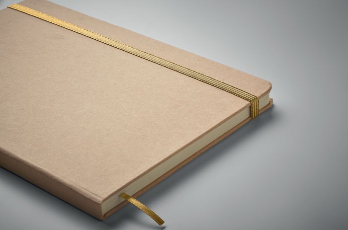 Opis: beležka A5 ima trde platnice iz recikliranega kartona za mleko in casebound vezavo, zato deluje urejeno, kompaktno in primerno za redno uporabo na sestankih, konferencah ali pri vsakodnevnem delu. V notranjosti je 160 črtastih strani iz recikliranega papirja (80 listov), ki omogočajo dovolj prostora za zapiske, ideje in organizacijo dela. Posebnost beležke je bež platnica, pri kateri se po laserski gravuri razkrije barva, zato je izdelek zelo primeren za podjetja, ki želijo bolj opazno, a še vedno urejeno personalizacijo. Beležka ima tudi elastični trak za zapiranje ter trak za označevanje strani, ki je usklajen z razkrito barvo in lepo dopolni celoten videz izdelka. Ker je izdelek FSC® certificiran, je primeren tudi za podjetja, ki želijo pri poslovnih ali promocijskih darilih poudariti odgovoren izbor materialov.