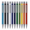 Opis: kemični svinčnik, material gumirana kovina, piše modro.