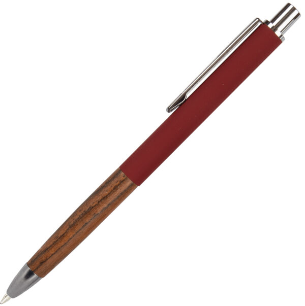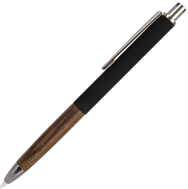Opis: kemični svinčnik, material gumiran aluminij in bambus, piše modro.