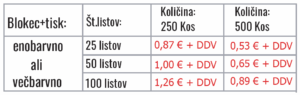 Brendiranje: tisk (enobarvni ali večbarvni) na blokce je vključen v ceno.
