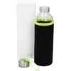 Opis: steklenička – flaška v etuiju iz črnega neoprena z barvnim robom in zanko na pokrovčku, s prostornino 500 ml, v kartonasti darilni škatlici – zelo praktično promocijsko darilo.