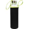 Opis: steklenička – flaška iz borosilikatnega stekla v črnem etuiju iz neoprena z barvnim robom s prostornino 600 ml – zelo praktično promocijsko darilo. Pakirana v kartonsko darilno škatlico.