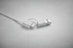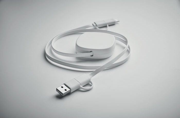 Opis: zložljivi polnilni kabel je opremljen s kombiniranim vhodom (2v1: Type-C in Type-A), kar omogoča polnjenje ali prenos podatkov iz različnih virov – npr. iz USB-A polnilnika ali sodobne Type-C naprave. Izhoda vključujeta Type-C in micro-B (2v1 izhod), kar omogoča povezavo z najpogostejšimi mobilnimi telefoni, tablicami in drugimi napravami. Kabel je dolg 80 cm, kar zagotavlja udobje uporabe. Ohišje je izdelano iz recikliranega ABS materiala, kar poudarja trajnostno naravnanost izdelka in je hkrati trpežno ter primerno za vsakodnevno uporabo. Kompaktna zložljiva oblika omogoča enostavno shranjevanje in prenašanje – idealno v torbi ali nahrbtniku.